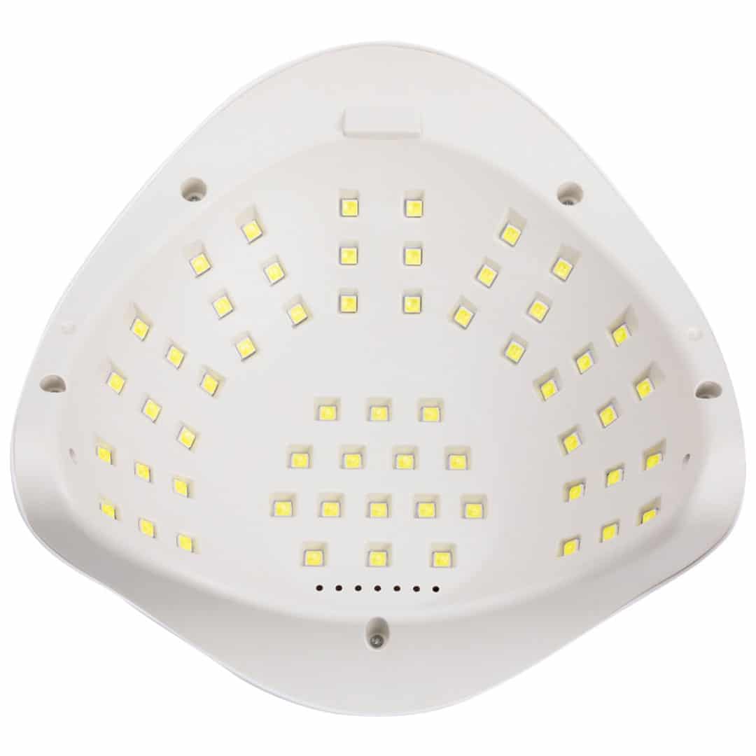 Inovatīva, enerģiju taupoša lampa ar 57 vienmērīgi sadalītām gaismas diodēm un mega jaudu – viena no lielākajām 180W jaudām tirgū! Jūs vienmēr būsiet pārliecināts par perfekti izvēlētu produktu! Pateicoties noņemamai apakšējai daļai un pārnēsāšanas rokturim, lampa ļauj ērti ievietot visu roku, kā arī ērti nocietināt nagus pedikīra procedūras laikā.